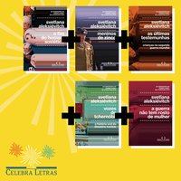 O Kit Svetlana Aleksiévitch contém os livros "O fim do homem soviéticco", "Meninos de zinco", "As últimas testemunhas", "Vozes de Tchernóbil" e "A guerra não tem rosto de mulher". Este kit faz parte da ação CelebraLetras, organizada pela Companhia das Letras em outubro e novembro de 2020, com o objetivo de oferecer aos leitores uma série de atividades em torno do livro e comemorar os 34 anos da editora. Para ver a lista completa de kits especiais, dicas dos editores e toda a programação, acesse o site www.celebraletras.com.br. Os estoques são limitados.